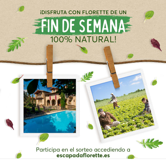No te pierdas el sorteo de escapadas Florette para ganar un fantástico fin de semana de relax. En concreto la promoción de escapadas Florette sortea 25 premios de dos noches de Hotel en habitación doble con desayuno ✚ una visita a las huertas Florette en Navarra. Si quieres ganar dos noches de hotel gratis y pasar un fin de semana 100% natural, solo tienes que seguir los pasos que indican a continuación: